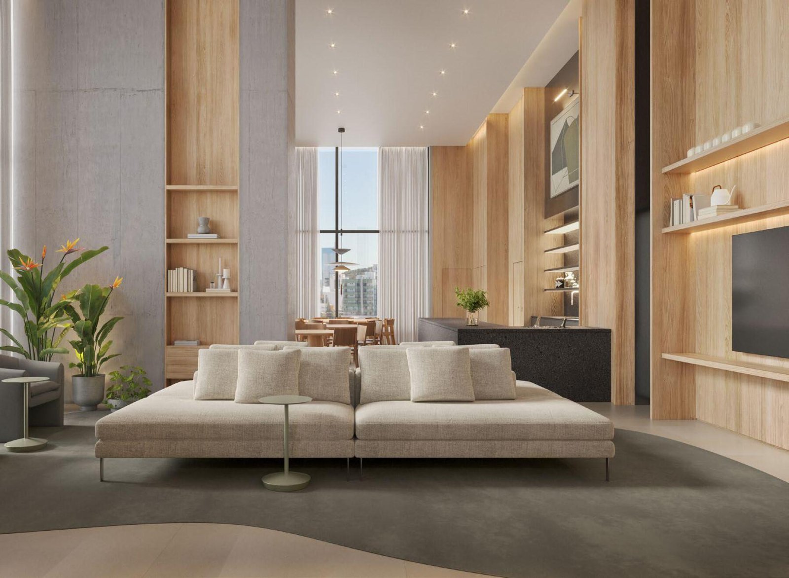 O Green Hills apresenta plantas inteligentes e amplas, com 4 apartamentos por andar nas unidades tipo. Cada apartamento de 145 m² no Green Hills inclui 4 suítes (sendo a master com closet), living integrado com sala de estar e jantar, cozinha, área de serviço, lavabo e sacada com churrasqueira a carvão, enquanto as coberturas duplex de 242 m² elevam o padrão com 5 suítes e espaço adicional. O Green Hills utiliza acabamentos de alta qualidade, como esquadrias Schüco, vidros de 12 mm e pé direito de 3,14 m (laje a laje), maximizando luz natural e conforto. Com um design moderno, o Green Hills reflete a excelência da Cechinel, priorizando funcionalidade e estética em Ariribá.