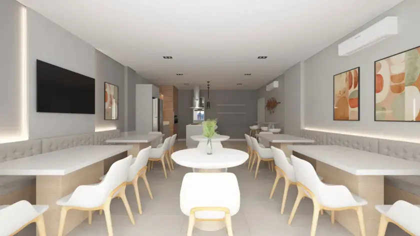 Com 63m² de área privativa, o imóvel conta com 02 dormitórios, sendo 01 suíte, sacada com churrasqueira a carvão e 02 vagas de garagem. O projeto foi pensado para oferecer conforto, funcionalidade e excelente aproveitamento dos espaços.