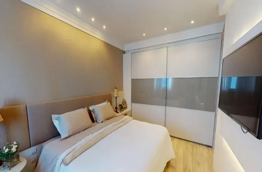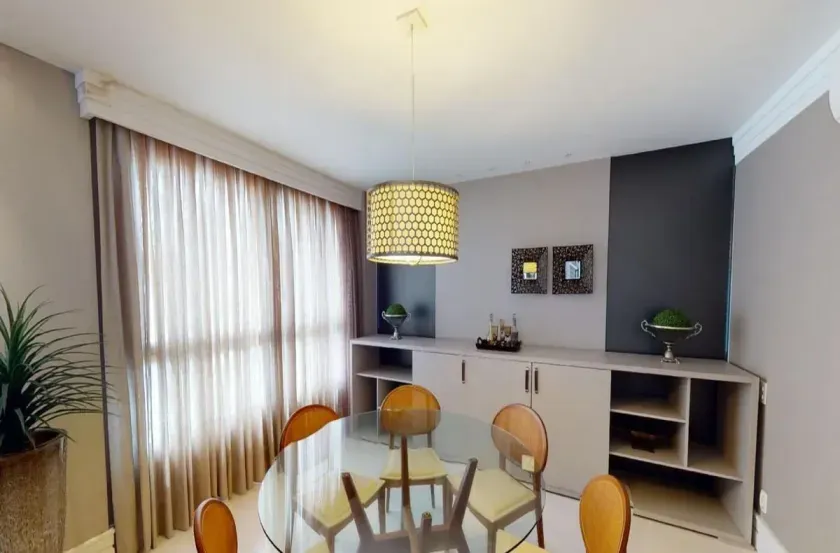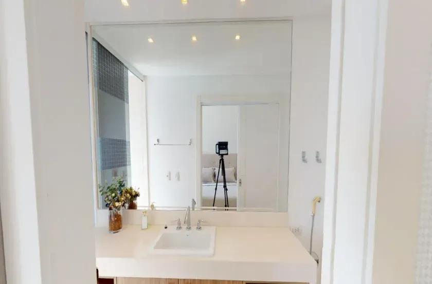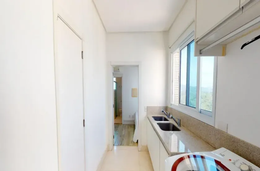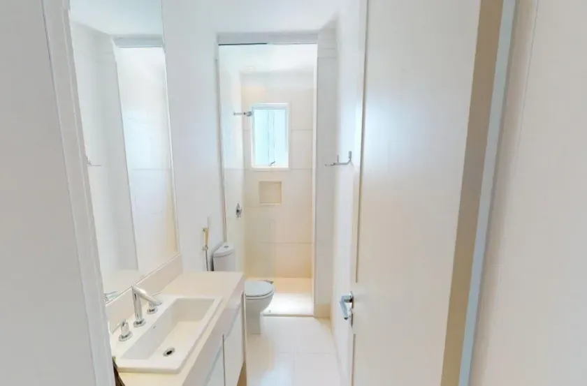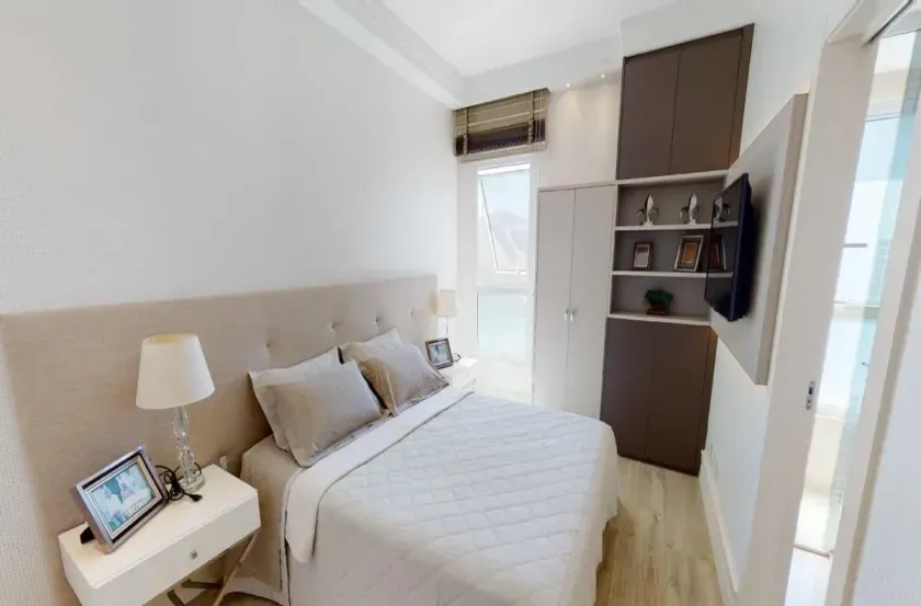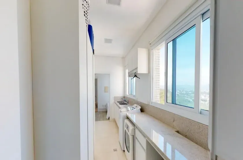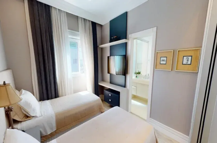 -Suíte máster com closet, amplo banheiro com banheira de hidromassagem, 2 chuveiros, 2 vasos sanitários e vista privilegiada
