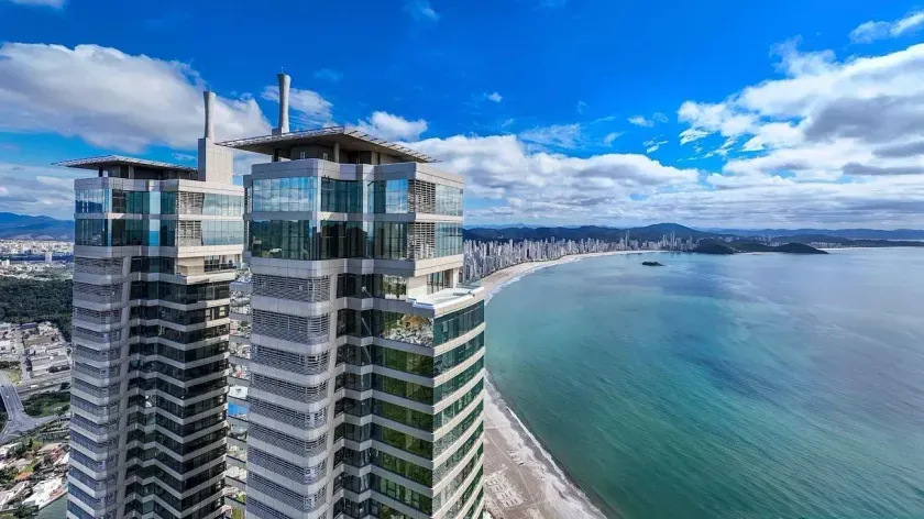 Cobertura de luxo frente mar que oferece vistas panorâmicas de 360 graus da cidade e de toda a orla de Balneário Camboriú. Assinada por renomado estúdio de design, une arquitetura contemporânea, conforto e exclusividade em cada detalhe.