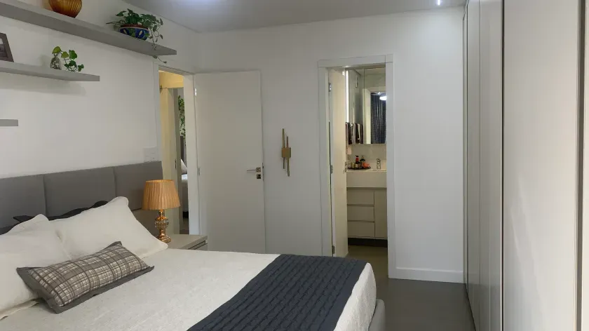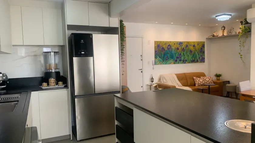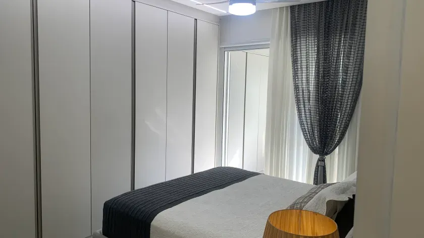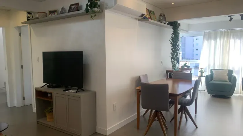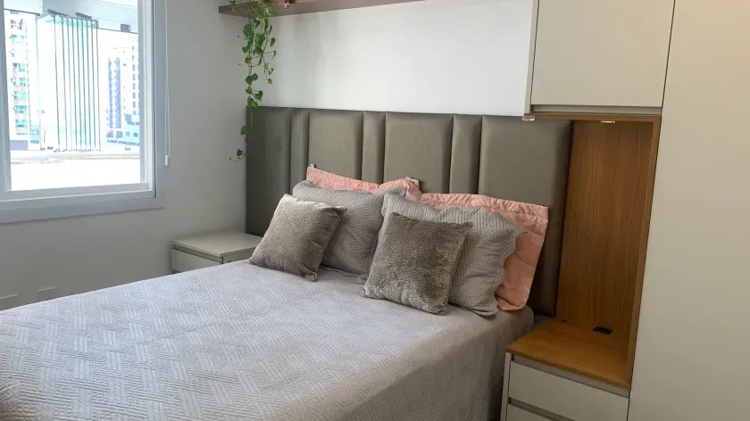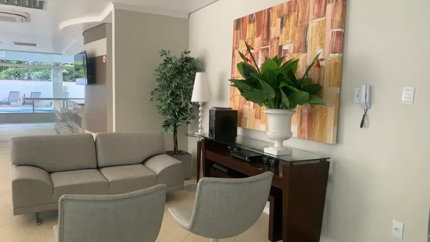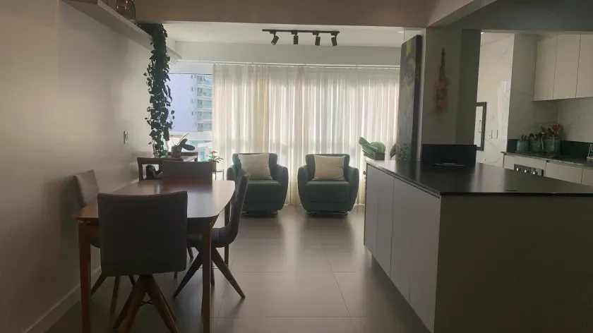 Apartamento mobiliado com 95m² privativos, 2 dormitórios (1 suíte) e 1 vaga de garagem, localizado a apenas 140m da praia.